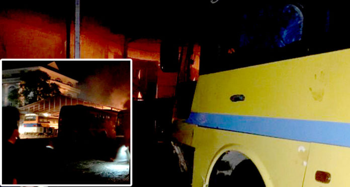 ភ្នំពេញ ៖ យានដ្ឋានជួសជុលរថយន្តក្រុងមួយកន្លែង ត្រូវបានអគ្គិភ័យឆាបឆេះទាំងកណ្តាលយប់ ធ្វើឱ្យមានការខូចខាតទ្រព្យសម្បត្តិ ព្រមទាំងសម្ភារយ៉ាងច្រើន និងបង្កឱ្យមានការភ្ញាក់ផ្អើលឡើង កាលពីវេលាម៉ោង១២និង១០នាទីរំលងអធ្រាត្រ ឈានចូលថ្ងៃទី២១ ខែកុម្ភៈ ឆ្នាំ២០១៩ នៅចំណុចយានដ្ឋានជួសជុលរថយន្តក្រុងរបស់ក្រុមហ៊ុន បូព៌ា អាស៊ី ដឹកអ្នកដំណើរ មានទីតាំងនៅតាមបណ្តោយផ្លូវបេតុង ខាងក្រោយសាលាខណ្ឌសែនសុខ ស្ថិតក្នុងភូមិរោងចក្រ សង្កាត់គោកឃ្លាង ខណ្ឌសែនសុខ។