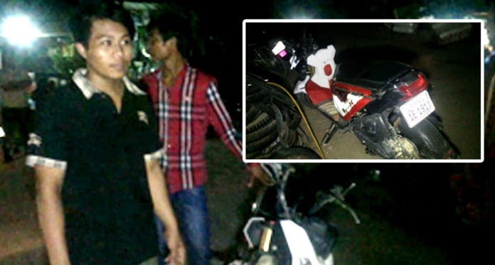ភ្នំពេញ ៖ យុវជន៣នាក់បានជិះម៉ូតូ១គ្រឿងម៉ាក Zoomer-X ពណ៌សលាយក្រហម ពាក់ស្លាកលេខត្បូងឃ្មុំ 1E -1911 បំណងទៅជួបស្រីស្នេហ៍ ដែលបានស្គាល់គ្នាតាមឆាតហ្វេសប៊ុក ដោយមិនដឹងថា ខាងស្រីមានសង្សាររួចទៅហើយ ឬក៏អត់នោះទេ លុះក្រោយពេលណាត់ជួបមុខគ្នា ក៏ខំជិះម៉ូតូស្កាត់ទៅជួប ដឹងអី! ពេលបានជួបមុខសាសងសម្តីទើបនឹងបាន២-៣ម៉ាត់ ស្រាប់តែត្រូវក្មេងស្ទាវមួយក្រុម ព្រួតគ្នាដេញវ៉ៃ ធ្វើឱ្យក្រុមយុវជនរងគ្រោះភ័យស្លន់ស្លោ នាំគ្នារត់គេចខ្លួនចោលម៉ូតូ។