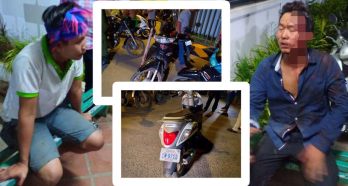 ភ្នំពេញ ៖ បុរស២នាក់ ទើបនឹងចេញពីផឹកស៊ី ស្ថិតក្នុងសភាពស្រវឹងធ្លាក់ភ្នែកដូចគ្នា បានជិះម៉ូតូក្នុងល្បឿនលឿន ដោយខ្វះការប្រុងប្រយ័ត្នក៏ជ្រុលបុកគ្នាយ៉ាងពេញទំហឹង នៅត្រង់ចំណុចផ្លូវកែង បណ្តាលឱ្យរងរបួសដូចគ្នា បន្ទាប់មកក៏កើតមានការជជែកវែកញែកយកត្រូវរៀងខ្លួន លុះដោយសារតែស្រវឹងជោកជាំផង ទើបនិយាយគ្នាមិនត្រូវ ធ្វើឱ្យកើតជាជម្លោះឈានដល់អំពើហិង្សាវាយគ្នាទៅវិញទៅមក បណ្តាលឱ្យបែកក្បាលដូចគ្នា និងត្រូវបានសមត្ថកិច្ចចុះអន្តរាគមន៍ នាំភាគីទាំងសងខាងទៅដោះស្រាយនៅប៉ុស្តិ៍នគរបាល។