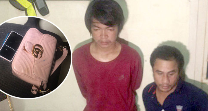 ភ្នំពេញ ៖ ជនសង្ស័យ២នាក់ រកស៊ីរត់ម៉ូតូឌុបសុខៗ ក៏បែកគំនិតបបួលគ្នាចេញធ្វើសកម្មភាពឆក់ ក្រែងបានលុយដុំ ស្រួលជាងរត់ឌុបសន្សំកាក់ល្អិត លុះក្រោយពីធ្វើសកម្មភាពឆក់ការបូបបានសម្រេចហើយ បែរជារត់មិនរួចទៅវិញ ព្រោះតែមានប្រជាពលរដ្ឋប្រដេញតាមចាប់បាន ប្រគល់ឱ្យសមត្ថកិច្ច បង្កឱ្យមានការភ្ញាក់ផ្អើលឡើង កាលពីវេលាម៉ោង១និង៣០នាទីរំលងអធ្រាត្រ ឈានចូលថ្ងៃទី២៣ ខែមីនា ឆ្នាំ២០១៩ នៅតាមបណ្តោយផ្លូវ១០៥ កែងនឹងផ្លូវ៣១០ ស្ថែតិក្នុងសង្កាត់បឹងកេងកងទី២ ខណ្ឌចំការមន។