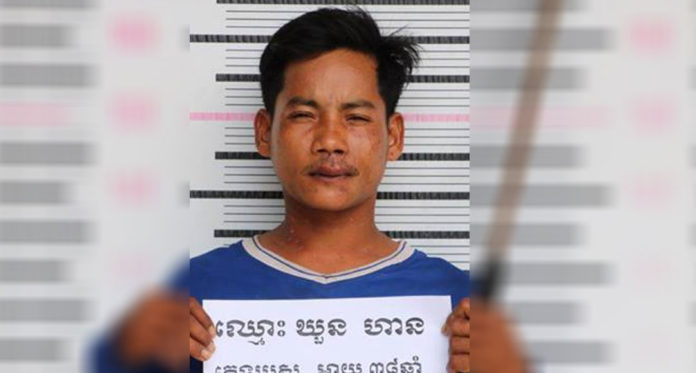 លោកវរសេនីយ៍ទោ ព្រហ្ម ថេង ប្រធានមន្ទីរយុត្តិធម៌ បានឱ្យដឹងថា យោងតាមបណ្តឹងរបស់ស្ត្រីរងគ្រោះជាប្រពន្ធ បានឱ្យដឹងថា ជនសង្ស័យជាប្តីឈ្មោះឃួន ហាន ជាមនុស្សញៀនគ្រឿងញៀន ពេលដែលខ្លួនជាប្រពន្ធ ត្រឡប់មកពីធ្វើការម្តងៗ ជនសង្ស័យតែងតែរករឿងឈ្លោះទាស់ទែងរាល់ថ្ងៃ ថែមទាំងប្រើហិង្សាមកលើខ្លួន និងបានយកដាវសាំម៉ូរ៉ៃមកគំរាមសម្លាប់មកលើខ្លួនជារៀងរាល់ថ្ងៃ រហូតដល់ខ្លួនមិនហ៊ាននៅផ្ទះ ព្រោះខ្លាចប្តីសម្លាប់តាមការគំរាម។