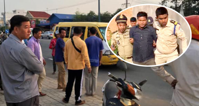 ភ្នំពេញ ៖ បុរសម្នាក់កំពុងជិះម៉ូតូឆ្លងផ្លូវមិនទាន់ផុតផង ក៏ស្រាប់តែត្រូវរថយន្ត១គ្រឿង ជ្រុលមកបុកនិងកិន អូសប្រមាណ១០០ម៉ែត្រ បណ្តាលឱ្យស្លាប់យ៉ាងអាណោចអាធ័ម លុះឃើញសភាពមិនស្រួលតៃកុងរថយន្ត ក៏ឈប់រថយន្ត រួចស្ទុះចុះរត់គេចទៅសម្ងំពួននៅក្នុងស្រះកំប្លោក ប៉ុន្តែត្រូវបានសមត្ថកិច្ចតាមរកឃើញ នាំយកទៅសាកសួរ។