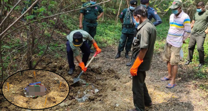 ដោយឡែកតាមរបាយការណ៍របស់សមត្ថកិច្ច បានឱ្យដឹងថា នៅថ្ងៃទី១៤ ខែមេសា នៅវេលាម៉ោង៨និង៣០នាទីព្រឹក សមត្ថកិច្ចបានទទួលព័ត៌មានពីប្រជាពលរដ្ឋមកថា មានស្នាមគាស់កកាយដី និងស្នាមកប់រណ្តៅថ្មីៗ១កន្លែង ត្រង់ចំណុចខាងកើតស្រះទឹក ក្រោយសណ្ឋាគារលី (នាគមាស)។ ក្រោយមក កម្លាំងសមត្ថកិច្ចបានចុះដល់កន្លែងកើតហេតុខាងលើ ព្រមទាំងអាជ្ញាធរភូមិអូរជ្រៅគាស់កាយមើល ក៏ប្រទះឃើញសាកសពមនុស្សច្រកថង់ស រុំការ៉ុងឆ្នូតពណ៌ក្រហមខៀវ និងមានក្លិនស្អុយ រលួយ មិនស្គាល់អត្តសញ្ញាណ (សាកសពរលួយស្អុយ)។