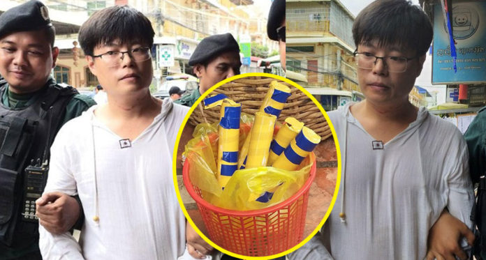 តាមប្រភពពីប្រជាពលរដ្ឋនៅក្បែរកន្លែងកើតហេតុ បានឲ្យដឹងថា មុនពេលកើតហេតុ កាលពីវេលាម៉ោង១០ព្រឹក ថ្ងៃទី០១ ខែឧសភា ឆ្នាំ២០១៩ គែបានឃើញបុរសម្នាក់ជាជនជាតិចិន បានស្ពាយកាបូ១ ពណ៌ខ្មៅ ដើររេរាចុះឡើង ហើយបានប្លុងចោលកាបូបស្ពាយចោលមុខប៉ុស្តិ៍នគរបាលចោមចៅទី១ ស្ថិតក្នុងភូមិត្រពាំងថ្លឹង សង្កាត់ចោមចៅទី១ ខណ្ឌពោធិ៍សែនជ័យ។ ដោយមានការងឿងឆ្ងល់ សមត្ថកិច្ចក៏បានឃាត់ខ្លួនបុរសជនជាតិរូបនោះភ្លាមៗផងដែរ។