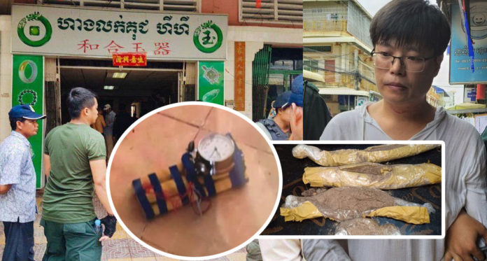 តាមប្រភពពីកន្លែងកើតហេតុ បានឱ្យដឹងថា នៅមុនពេលកើតហេតុ កាលពីវេលាម៉ោង៨និង៤០នាទីព្រឹក ថ្ងៃទី០១ ខែឧសភា ឆ្នាំ២០១៩ គេឃើញជនសង្ស័យជាជនជាតិចិនខាងលើ បានជិះម៉ូតូកង់បី ដោយមានស្ពាយកាបូប១ជាប់ខ្លួនផង បានមកឈប់នៅចំណុចខាងមុខ ហាងចិនខាងលើ រួចក៏ចុះពីលើកង់បី ដើរចូលទៅសាកសួររកឈ្មោះតឹង ជាជនជាតិចិនដូចគ្នា តែត្រូវបានម្ចាស់ផ្ទះប្រាប់ថា មិនឃើញទេ ព្រោះឈ្មោះ តឹង គ្រាន់តែជាម៉ូយធ្លាប់ចេញចូលទិញទំនិញនៅក្នុងហាងប៉ុណ្ណោះ តែពេលនេះមិនដែលឃើញមកទេ តែជនសង្ស័យមិនជឿ និងថែមទាំងបានចោទប្រកាន់ម្ចាស់ហាងចិន ថាបានលាក់ឃុតឃិតគ្នា បន្ទាប់មកជនសង្ស័យក៏បានទាញយកវត្ថុម៉្យាង សង្ស័យជាគ្រាប់បែកច្នៃ មានភ្ជាប់នាឡិកាមួយផង មកដាក់ក្នុងផ្ទះគំរាមម្ចាស់ហាង ដើម្បីឱ្យម្ចាស់ហាងហៅឈ្មោះតឹង ជាគូជម្លោះរបស់គេឱ្យចេញមកជួបរូបគេកុំខាន។