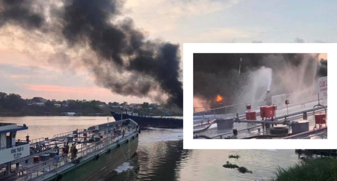 ភ្នំពេញ៖ សាឡង់ដឹកប្រេងមួយគ្រឿង របស់ក្រុមហ៊ុនសាវីម៉ិច បានផ្ទុះឆេះកណ្តាលទន្លេ បណ្តាលឲ្យមនុស្សម្នាក់បាត់ខ្លួន។ ហេតុការណ៍នេះបានកើតឡើងកាលពីម៉ោង៩ព្រឹក ថ្ងៃទី១៥ ខែឧសភា ឆ្នាំ២០១៩ នៅសង្កាត់គីឡូម៉ែត្រលេខ ៦ ខណ្ឌឫស្សីកែវ។