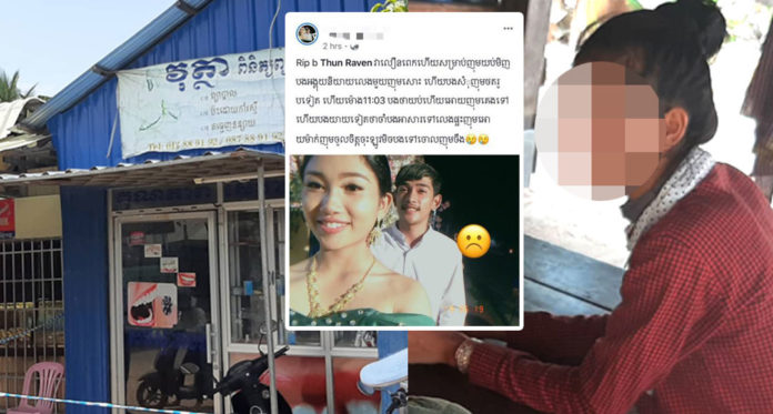 ដោយឡែក យោងតាមគណនីហ្វេសប៊ុក ឈ្មោះ កញ្ញា ពេជ្រ ដែលត្រូវគេដឹងថា ជាសង្សាររបស់យុវជនរងគ្រោះខាងលើ កាលពីព្រឹកថ្ងៃទី20 ខែឧសភា ឆ្នាំ2019 បានបង្ហោះរូបភាព1សន្លឹក ដែលអ្នកទាំងពីរកំពុងឈរនៅខាងមុខរោងមង្គលការ និងមានថ្ងៃខែក្នុងរូបថត បញ្ជាក់ថា ថតនៅថ្ងៃទី19 ខែឧសភា ឆ្នាំ 2019 រួចបង្ហោះសារមួយថា “Rip b Thun Raven វាលឿនពេកហើយសម្រាប់ខ្ញុំ យប់មិញ បងអង្គុយនិយាយលេងជាមួយខ្ញុំសោះ ហើយបងសុំខ្ញុំថតរូបទៀត ហើយម៉ោង 11ៈ 03 បងថាយប់ហើយ ឱ្យខ្ញុំគេងទៅ ហើយបងនិយាយទៀតថា ចាំបងឧស្សាហ៍ទៅលេងផ្ទះខ្ញុំ ឱ្យម៉ាក់ខ្ញុំចូលចិត្ត ចុះឥឡូវម៉េចបងទៅចោលខ្ញុំចឹង…?”។