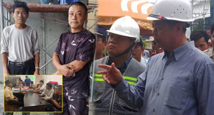 កម្មករ២នាក់ ដែលត្រូវឃាត់ខ្លួន មិនត្រូវបានស្គាល់ឈ្មោះនោះទេ គ្រាន់តែដឹងថាជាជនជាតិចិន។