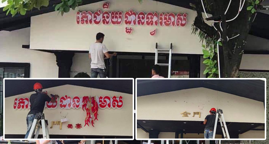 ប្រធានមន្ទីរវប្បធម៌និងវិចិត្រសិល្បៈខេត្តព្រះសីហនុ លោកដេត ណូ បានប្រាប់ថា ក្រុមការងារចម្រុះ បានចុះរុះរើស្លាកយីហោរបស់ជនជាតិចិនមួយកន្លែង ដែលសរសេរឈ្មោះថា (ភោជនីយដ្ឋានទ្វារមាស) មិនត្រឹមត្រូវខុសឆ្គងទៅនឹងខ្លឹមសារពាក្យពេជន៍ មានទីតាំងខាងលើប្រាកដមែន។