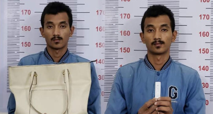 ភ្នំពេញ៖ ជនសង្ស័យម្នាក់បានធ្វើសកម្មភាពឆក់កាបូបអ្នកដមណើរតាមផ្លូវ ហើយត្រូវសមត្ថកិច្ចឃាត់ខ្លួនបានភា្លមៗ យកមកសាកសួរនៅប៉ុស្តិ៍ប៉ូលិស។