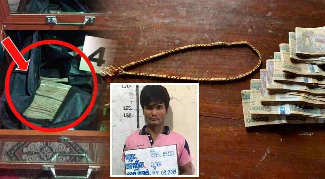 ខេត្តបាត់ដំបង ៖ ជនសង្ស័យម្នាក់បានធ្វើសកម្មភាពលួចគាស់ផ្ទះអ្នកភូមិជាមួយគ្នានៅគ្រាដែលម្ចាស់ផ្ទះមិននៅ និងបានប្រមូលយកលុយចំនួន១៣លានរៀល ព្រមទាំងគ្រឿងអលង្ការមួយចំនួនទៀត រួចក៏បានយកលុយទាំងនោះទៅសងបំណុលគេផង ដើរស៊ីចាយហ៊ឺហាផង ទីបំផុតក៏ត្រូវសមត្ថកិច្ចស្រាវជ្រាវចាប់ក្របួចជាប់ ខណៈដែលមិនទាន់ចាយលុយអស់នៅឡើយ។