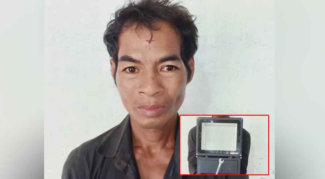 ជនសង្ស័យខាងលើ មានឈ្មោះឡុង សេនាលី ភេទប្រុស អាយុ៤៧ឆ្នាំ មុខរបរនិងលំនៅមិនពិតប្រាកដ។ វត្ថុតាងចាប់យកអំពូលភ្លើងហ្វា ម៉ាក IP66-200w ពណ៌ខ្មៅ ទំហំ២៥សង់ទីម៉ែត្រគុណនឹង ៣៥សង់ទីម៉ែត្រ មួយគ្រាប់។ កូនសោដោះលេខ១២ ម៉ាក THC មួយដើម។
