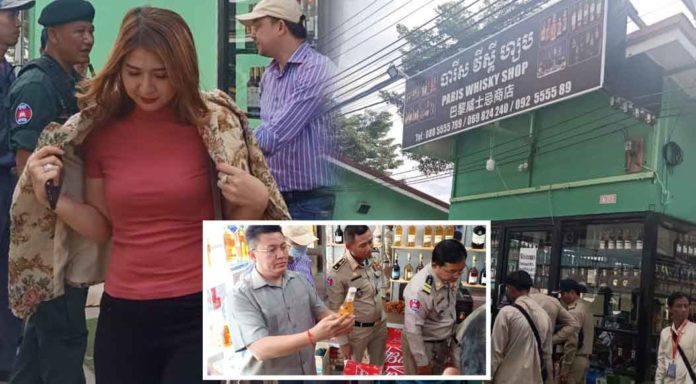 ខេត្តបន្ទាយមានជ័យ ៖ កាលពីរសៀលថ្ងៃទី២៨ វិច្ឆិកា ឆ្នាំ២០១៩ លោកឧត្តមសេនីយ៍ទោ ឡុង ស្រេង អនុប្រធាននាយកដ្ឋាននគរបាលប្រឆាំងបទល្មើសសេដ្ឋកិច្ចក្រសួងមហាផ្ទៃ និងលោកឧត្តសេនីយ៍ត្រី ចាប សុផាឬទ្ធិ ស្នងការរងទទួលផែនប្រឆាំងបទល្មើសសេដ្ឋកិច្ចខេត្តបន្ទាយមានជ័យ សហការជាមួយសមត្ថកិច្ច អាជ្ញាធរក្រុង ដោយមានការសម្របសម្រួលពីលោកមាស ច័ន្ទពិសិដ្ឋ ព្រះរាជអាជ្ញាអមសាលាដំបងខេត្ត បានចុះបង្ក្រាបតូបលក់ស្រាក្លែងក្លាយមួយកន្លែងយីហោ ប៉ារីស វីស្គី ហ្សប ដែលមានម្ចាស់ហាងឈ្មោះហេង ស្រីពៅ។