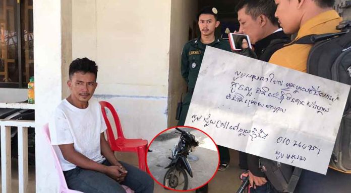 ដោយឡែក តាមការបញ្ជាក់ឱ្យដឹងពីសមត្ថកិច្ច បន្ទាប់ពីឃាត់បុរសខាងលើនាំយកមកសាកសួរពីដំណើររឿងរួចមក សមត្ថកិច្ចបានឆែកឃើញមានសំបុត្របណ្តាំចុងក្រោយ១ច្បាប់ដែលជនរងគ្រោះបានសរសេរទុកមានខ្លឹមសារទាំងស្រុងថា “សូមអរគុណដែលអ្នកម្តាយចង់ឱ្យកូនល្អ ជាតិនេះខ្ញុំមិនបានសងគុណម្តាយ ចាំជាតិក្រោយណាម្តាយ សូមជួយ Call ទៅម្តាយខ្ញុំផង ០១០-៧៦៤៩៥១ សូមអរគុណ…”។