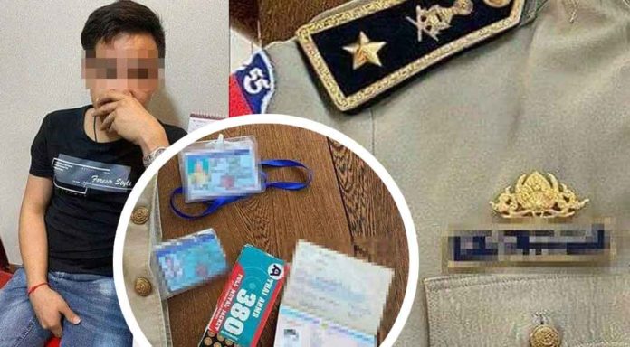 ភ្នំពេញ ៖ បុរសម្នាក់ត្រូវបានសមត្ថកិច្ចចាប់ឃាត់ខ្លួនបញ្ជូនទៅកាន់តុលាការ និងត្រូវបានតំណាងអយ្យការអមសាលាដំបូងរាជធានីភ្នំពេញ កាលពីថ្ងៃទី០៩ ខែមីនា ឆ្នាំ២០២០ សម្រេចធ្វើការចោទប្រកាន់ជាផ្លូវការពាក់ព័ន្ធករណីក្លែងឯកសណ្ឋានជាមន្ត្រីនគរបាលជាតិ និងឋានៈតួនាទីជាឧត្តមសេនីយ៍ត្រី ព្រមទាំងកាន់កាប់អាវុធខុសច្បាប់ទៅឆបោកប្រាក់អ្នកដទៃចំនួនជាង១០ម៉ឺនដុល្លារ ដែលត្រូវចាត់បញ្ជូនទៅខាងចៅក្រមស៊ើបសួរ ដើម្បីសម្រេចឃុំខ្លួនដាក់ពន្ធនាគារជាបណ្តោះអាសន្ន។