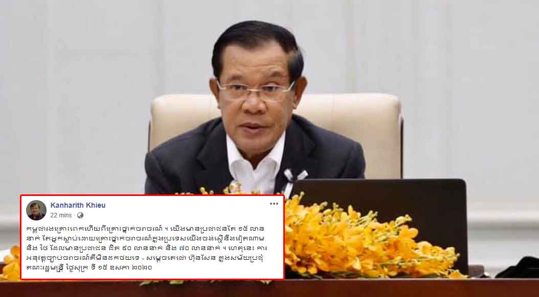 យោងតាមការបង្ហោះសារពីឯកឧត្តម ខៀវ កាញ៉ារីទ្ធ រដ្ឋមន្ត្រីក្រសួងព័ត៌មាន បានឲ្យដឹងថា “កម្ពុជារងគ្រោះពេកហើយពីគ្រោះថ្នាក់ចរាចរណ៍ ។ យើងមានប្រជាជនតែ១៥លាននាក់ តែអ្នកស្លាប់ដោយគ្រោះថ្នាក់ចរាចរណ៍ក្នុងប្រទេសយើងចង់ស្មើនឹងវៀតណាម និង ថៃ ដែលមានប្រជាជន ជិត ៩០ លាននាក់ និង ៧០ លាននាក់ ។ ហេតុនេះ ការអនុវត្តច្បាប់ចរាចរណ៍គឺមិនដកថយទេ – សម្តេចតេជោ ហ៊ុនសែន ក្នុងសម័យប្រជុំគណៈរដ្ឋមន្ត្រី ថ្ងៃសុក្រ ទី ១៥ ឧសភា ២០២០”។