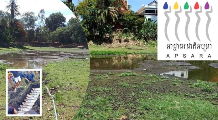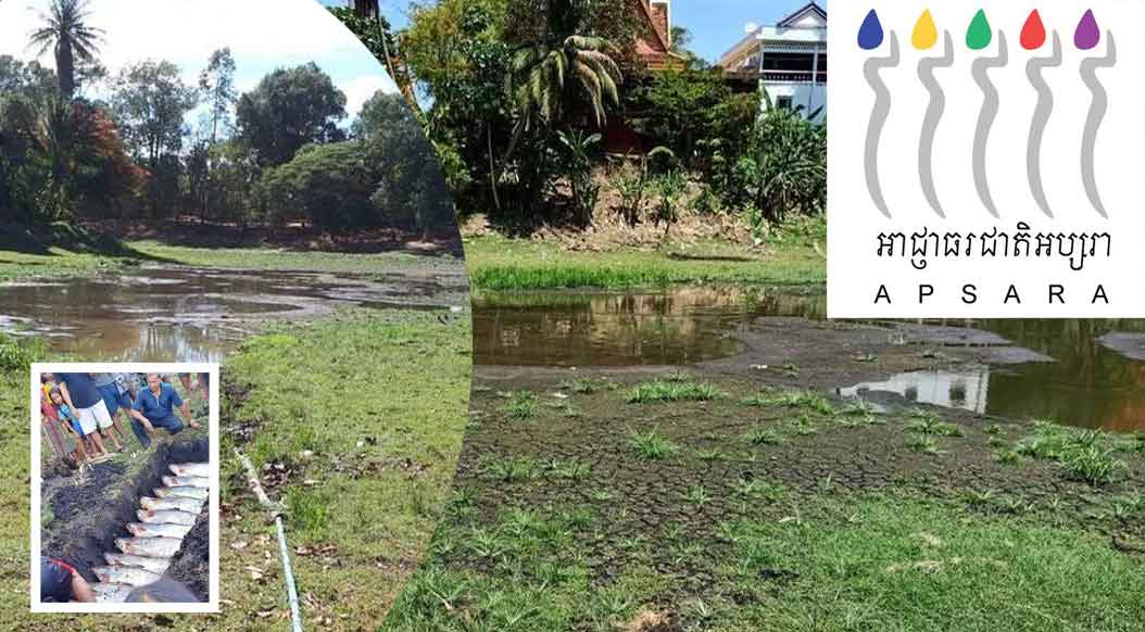 ខេត្តសៀមរាប ៖ ផ្ទុះការរិះគន់អាជ្ញាធរអប្សរា ថាមិនចេះថែរក្សាទឹកកសិណប្រាសាទ បណ្តោយឱ្យរីងហួតបណ្តាលឱ្យរីងងាប់ត្រីធំៗអស់ បន្ទាប់ពីត្រីប្រាជាច្រើនក្បាលនៅក្នុងកសិណប្រាសាទបាគង ស្ថិតក្នុងស្រុកប្រាសាទបាគង ខេត្តសៀមរាប បានងាប់ ខណៈដែលជាច្រើនក្បាលទៀតប្រឈមនឹងងាប់។