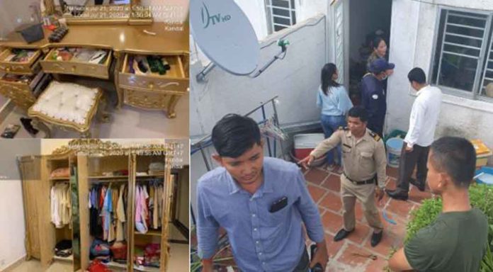 ប្រភពឱ្យដឹងថា នៅថ្ងៃទី២០ ខែកក្កដា ឆ្នាំ២០២០ វេលាម៉ោង១០ព្រឹក ជនរងគ្រោះព្រមទាំងក្រុមគ្រួសារបានចាក់សោផ្ទះមុខ ក្រោយ ហើយចាកចេញទៅស្រុកកំណើត ដោយគ្មានអ្នកនៅចាំផ្ទះឡើយ។ លុះដល់យប់ថ្ងៃទី២១ ខែកក្កដា ឆ្នាំ២០២០ ទើបត្រឡប់មកពីស្រុកវិញ ចាក់សោផ្ទះខាងមុខ ស្រាប់តែឃើញសម្ភារៈក្នុងផ្ទះរប៉ាត់រប៉ាយ បាត់ទូរទស្សន៍ ក៏ដើរមកមើលខាងក្រោយ ឃើញរបើកបង្អួច លុះមើលក្នុងបន្ទប់ឃើញរបើកទូកកាយរើសខោអាវពាសពេញបន្ទប់ និងបាត់ទូដែកដែលមាន ទ្រព្យសម្បត្តិដូចមានខាងលើ ទើបជនរងគ្រោះបានទូរស័ព្ទរាយការណ៍ទៅលោកអធិការនគរបាលក្រុងតាខ្មៅ បញ្ជាមកប៉ុស្តិ៍រដ្ឋបាលតាខ្មៅ ចុះពិនិត្យដល់កន្លែងកើតហេតុ ដើម្បីស្រាវជ្រាវរកជនសង្ស័យ ចាត់ការតាមនីតិវិធី។
