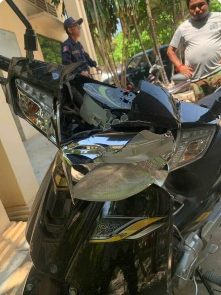 ជនរងគ្រោះ បន្តថា ពេលនោះ ខ្លួនបានឃើញពួកចោរមានគ្នា ៩នាក់ ជិះម៉ូតូ ៣គ្រឿង បានកាប់ចិញ្ច្រាំម៉ូតូពួកខ្លួន ទាំង២គ្រឿង រួចកាប់ផ្តាច់កន្ទុយម៉ូតូ ប្លន់យកស្លាកលេខទៅបាត់។ ស្លាកលេខនោះ មានលេខ បាត់ដំបង 1AO-2502 រីឯមួយគ្រឿងទៀត ពួកវាកាប់កម្ទេចដែរ តែមិនបានយកស្លាកលេខទេ ទំនងស៊េរីចាស់ពេក ហើយ ពួកវាបាននាំគ្នាជិះត្រឡប់ទៅក្រោយវិញអស់ទៅ។