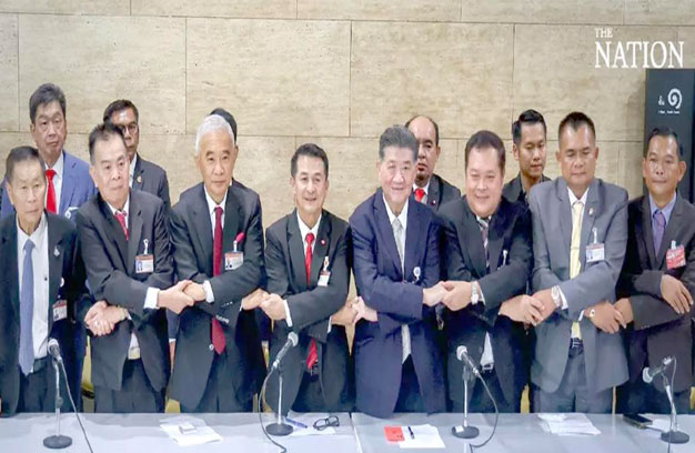 សមាជិកសំខាន់ៗនៃគណបក្សភឿថៃនិងគណបក្សថ្មីទាំងប្រាំមួយបានប្រកាសសម្ព័ន្ធភាពរបស់ពួកគេនៅសភាកាលពីថ្ងៃពុធ។ គណបក្សផ្សេងទាំង៦នោះរួមមានPrachachart (៩អាសនៈ), Pheu Thai Ruam Palang (២), Charthaipattanakla (២ អាសនៈ), Seri Ruam Thai (១ អាសនៈ), Palang Sangkhom Mai (១ អាសនៈ) និង គណបក្ស Thongtee Thai (១ អាសនៈ) និងត្រូវបានបង្កើតឡើងដោយអតីតមេភូមិ អ្នកស្ម័គ្រចិត្តសុខាភិបាល និងមន្ត្រីរាជការផ្សេងទៀត។