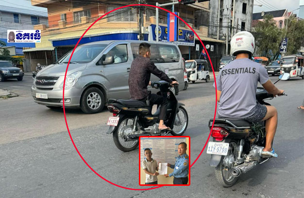 ខេត្តព្រះសីហនុ ៖ បុរសជាជនស៊ីវិលម្នាក់ បានជិះម៉ូតូ ១គ្រឿង ពាក់ស្លាកលេខ នគរបាល ប៉ុន្តែមិនមានបំពាក់កញ្ចក់ និងថែមទាំងមិនពាក់មួកសុវត្ថិភាពទៀតផង លុះត្រូវបានអ្នកដំណើរប្រទះឃើញ ថតរូបភាពបង្ហោះចូលបណ្តាញសង្គម ធ្វើឱ្យមានការចែករំលែក និងបញ្ចេញមតិ រិះគន់យ៉ាងខ្លាំង ដោយយល់ថា បុរសខាងលើ គឺជាសមត្ថកិច្ច ជិះម៉ូតូពាក់ស្លាកលេខនគរបាល តែមិនគោរពច្បាប់ចរាចរណ៍។