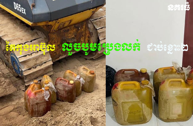 ខេត្តកណ្តាល ៖ បុរសជាអ្នកបញ្ជាគ្រឿងចក្រ (តៃកុងអាប៊ុល) ចំនួន២នាក់ បានធ្វើសកម្មភាពលួចបូមប្រេងម៉ាស៊ូត យកទៅលក់ ចំនួន ៦កាន ស្មើនឹង១៨០លីត្រ លុះក្រោយមក មេការជាអ្នកគ្រប់គ្រងការដ្ឋានខ្សាច់ បានដឹង ក៏ប្តឹងសមត្ថកិច្ចចាប់ឃាត់ខ្លួនទាំង២នាក់ នាំយកទៅចាត់ការតាមច្បាប់។