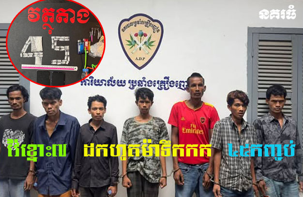 ខេត្តកណ្តាល ៖ ជនសង្ស័យ ១ក្រុម ជាមុខសញ្ញាជួញដូរនិងប្រើប្រាស់នូវសារធាតុញៀនដោយខុសច្បាប់ ត្រូវបានកម្លាំងសមត្ថកិច្ចប្រឆាំងគ្រឿងញៀន ឆ្មក់ចុះបង្ក្រាបបន្ទាប់ពីទទួលបានសេចក្តីរាយការណ៍ពីប្រជាពលរដ្ឋល្អ ដោយឃាត់ខ្លួនសរុបចំនួន៧នាក់ ព្រមទាំងដកហូតវត្ថុតាងជាក់ស្តែង ថ្នាំញៀន ប្រភេទម៉ាទឹកកក សរុបចំនួន៤៥កញ្ចប់។
