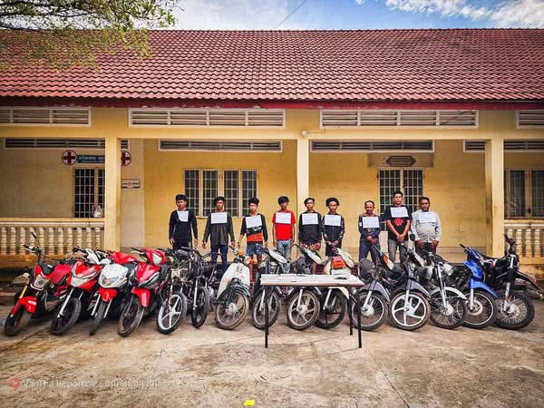 ក្រុមជនសង្ស័យទាំង៩នាក់ ដែលសមត្ថកិច្ចបង្ក្រាបបាន រួមមាន ទី១-ឈ្មោះហឿន រក្សា ភេទប្រុស អាយុ១៧ឆ្នាំ រស់នៅភូមិបួរ ឃុំបួរ ស្រុកភ្នំព្រឹក។ ទី២-ឈ្មោះអៀង មុន្នី ភេទប្រុស អាយុ១៥ឆ្នាំ រស់នៅភូមិបួរ ឃុំបួរ ស្រុកភ្នំព្រឹក។ ទី៣-ឈ្មោះចិត្ត ណាវី ភេទប្រុស អាយុ១៨ឆ្នាំ រស់នៅភូមិបួរ ឃុំបួរ ស្រុកភ្នំព្រឹក។ ទី៤-ឈ្មោះណែត ម៉េងងួរ ភេទប្រុស អាយុ១៩ឆ្នាំ រស់នៅភូមិបួរ ឃុំបួរ ស្រុកភ្នំព្រឹក។ ទី៥-ឈ្មោះខាន ប៊ុនរៈ ភេទប្រុស អាយុ១៩ឆ្នាំ រស់នៅភូមិបួរ ឃុំបួរ ស្រុកភ្នំព្រឹក។ ទី៦-ឈ្មោះថា ដាវិត ភេទប្រុស អាយុ១៥ឆ្នាំ រស់នៅភូមិបួរ ឃុំបួរ ស្រុកភ្នំ ព្រឹក។ ទី៧-ឈ្មោះហឿម ចាន់ថា ភេទប្រុស អាយុ៤៦ឆ្នាំ  រស់នៅភូមិបួរ ឃុំបួរ ស្រុកភ្នំព្រឹក (អ្នកទទួលទិញ ផលចោរកម្ម)។ ទី៨-ឈ្មោះកាន គីម ភេទប្រុស អាយុ៤៤ឆ្នាំ រស់នៅភូមិពេជ្រចិន្តា ឃុំពេជ្រចិន្តា ស្រុកភ្នំព្រឹក (អ្នកទទួលទិញផលចោរកម្ម) និងទី៩-ឈ្មោះឡុង សុជា ភេទប្រុស អាយុ៣៣ឆ្នាំ រស់នៅភូមិស្វាយទាប ឃុំអង្គរ ពពេល ស្រុកគងពិសី ខេត្តកំពង់ស្ពឺ (អ្នកទទួលទិញផល ចោរកម្ម)។ ចំពោះវត្ថុតាងដកហូត រួមមាន ម៉ូតូ ចំនួន១៥គ្រឿង និងស្លាកលេខម៉ូតូចំនួន២១សន្លឹក។