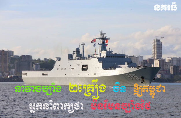 ភ្នំពេញ ៖ បក្សកាន់អំណាច (គណបក្សប្រជាជនកម្ពុជា) បានលើកឡើងថា នាវាចម្បាំង ២គ្រឿង ដែលចិន ផ្ដល់មកឲ្យកម្ពុជា មិនមែនយកមកដើម្បីច្បាំងជាមួយប្រទេសណា រួមទាំងប្រទេសថៃ នោះទេ ព្រោះកម្ពុជា បានប្រកាន់ជំហរសន្តិភាព ដោះស្រាយបញ្ហាដោយសន្តិវិធី និងតាមផ្លូវច្បាប់អន្តរជារិ គឺទុកគ្រាន់បង្ក្រាបបទល្មើសលើដែនសមុទ្រប៉ុណ្ណោះ ។