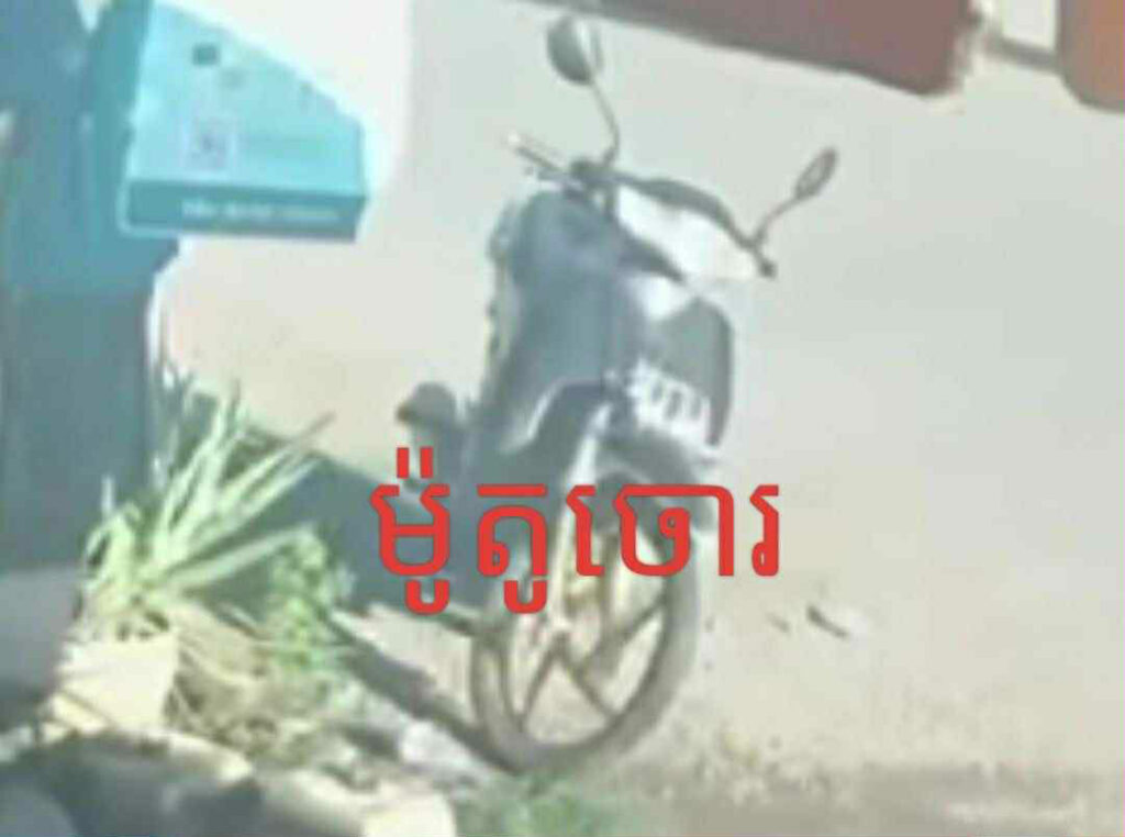 ខេត្តបាត់ដំបង ៖ ជនសង្ស័យម្នាក់ បានជិះម៉ូតូស៊េរីចាស់ ១គ្រឿង ទៅឈប់នៅខាងមុខហាងលក់ទូរស័ព្ទ មួយកន្លែង រួចចុះលួចយកម៉ូតូស៊េរីថ្មី របស់អ្នកលក់ទូរស័ព្ទ ជិះចេញដោយសុវត្ថិភាព ដោយបន្សល់ទុកម៉ូតូកញ្ចាស់ នៅនឹងកន្លែងកើតហេតុ។