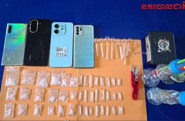ក្នុងប្រតិបត្តិការខាងលើនេះ កម្លាំងសមត្ថកិច្ចបានចាប់ឃាត់ខ្លួនជនសង្ស័យបានចំនួន៥នាក់ (១-ឈ្មោះសឿង សំអ៊ន់  ២-ឈ្មោះកន សារិទ្ធិ ៣-ឈ្មោះដែន សុះ ៤-ឈ្មោះសាន វិសាន់ ៥-ឈ្មោះវ៉ាត គម្ភៈ) ព្រមតាំងដកហូតសម្ភារៈ និងវត្ថុតាង រួមមាន ១-ក្រាមពណ៌សថ្លា ជាគ្រឿងញៀន ប្រភេទមេតំហ្វេតាមីន (ម៉ាទឹកកក) ចំនួន៤៣កញ្ចប់ (១២កញ្ចប់ធំល្មម និង៣១កញ្ចប់តូច) ទម្ងន់១២,៩៥ក្រាម (ថ្លឹងទាំង សំបកថង់)។ ២- ទូរស័ព្ទ ចំនួន៤គ្រឿង (ម៉ាក INFINIX  ចំនួន១គ្រឿង ម៉ាក OPPO ចំនួន១គ្រឿង ម៉ាក REDME ចំនួន១គ្រឿង ម៉ាក SAMSUNG ចំនួន១គ្រឿង)។ ៣-ម៉ូតូ ចំនួន២គ្រឿង (ម៉ាកស៊ុយស៊ូគី ស្មាស់ ពណ៌ប្រផេះ ១គ្រឿង និងម៉ាក Honda Wave S ពណ៌ខ្មៅ គ្មានស្លាកលេខ ១គ្រឿង)។ ៤-ថង់សម្រាប់វេចខ្ចប់ថ្នាំញៀន មួយចំនួន។ ៥-ឧបករណ៍កែច្នៃសម្រាប់ជក់ថ្នាំញៀន មួយចំនួន។ ៦-ប្រអប់ពណ៌ខ្មៅ ចំនួន១។