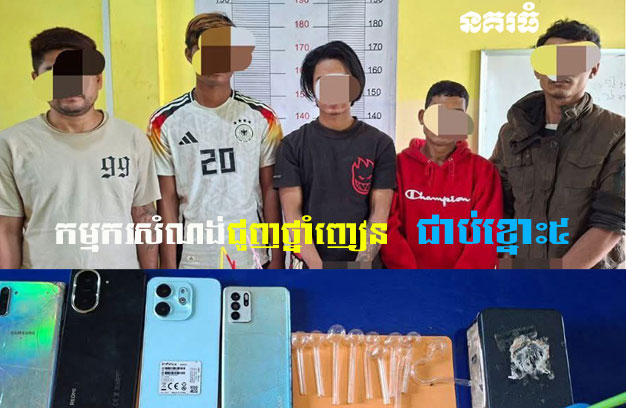ខេត្តមណ្ឌលគិរី ៖ កម្លាំងសមត្ថកិច្ចជំនាញប្រឆាំងគ្រឿងញៀន ខេត្តមណ្ឌលគិរី បានបើកប្រតិបត្តិការបង្ក្រាបករណីជួញដូរ រក្សាទុកនិងប្រើប្រាស់ដោយខុសច្បាប់នូវសារធាតុញៀន នៅក្នុងការដ្ឋានសំណង់ ១កន្លែង ដោយឃាត់ខ្លួនក្រុមកម្មករសំណង់ ចំនួន៥នាក់ ដកហូតវត្ថុតាង ថ្នាំញៀនប្រភេទម៉ាទឹកកក ចំនួន៤៣កញ្ចប់។