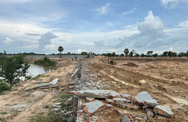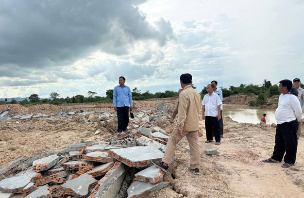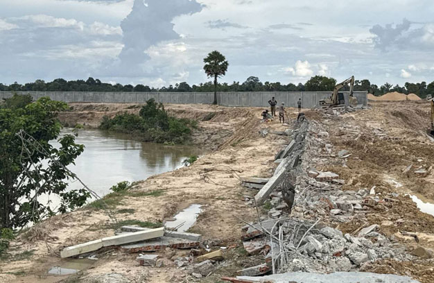 ខេត្តតាកែវ ៖ របងថ្ម ប្រវែង១៤៨ម៉ែត្រ ដែលបានសាងសង់រំលោភលើដីចំណីស្ទឹងស្លាគូ ស្ថិតក្នុងភូមិត្រពាំងពោធិ៍ ឃុំជាងទង ស្រុកត្រាំកក់ គិតត្រឹមវេលាម៉ោង ៤និង១៦នាទីរសៀល ថ្ងៃទី១៣ ខែតុលា ឆ្នាំ២០២៥ ត្រូវបានអាជ្ញាធរប្រើកណ្តាប់ដៃដែក វាយកម្ទេចចោលទាំងស្រុង។
