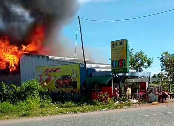 ខេត្តកំពង់ស្ពឺ ៖ ផ្ទះលក់អីវ៉ាន់ចាប់ហួយ ១ខ្នង ត្រូវបានអគ្គិភ័យឆាបឆេះយ៉ាងសន្ធោសន្ធៅ បណ្តាលឱ្យខូចខាតអស់ទាំងស្រុង រួមនិងប្រាក់ ២ពាន់ដុល្លារ និងមាស៥ជី ដោយមូលហេតុផ្តើមចេញពីការឆ្លងចរន្តអគ្គិសនី (ទុស្សេឆ្លងខ្សែភ្លើង)។
