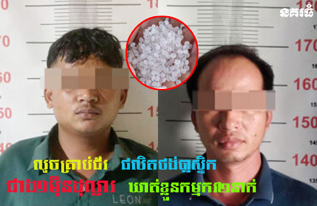 លួចគ្រាប់ជ័រ ផលិតថង់ប្លាស្ទិក ជាង១ម៉ឺនដុល្លារ ឃាត់ខ្លួនកម្មករ២នាក់