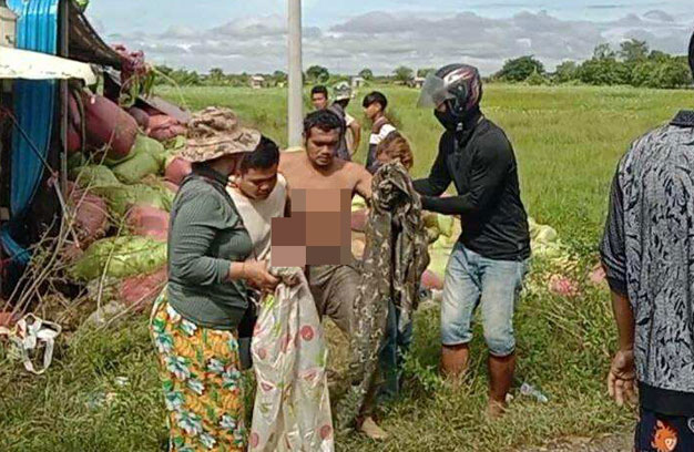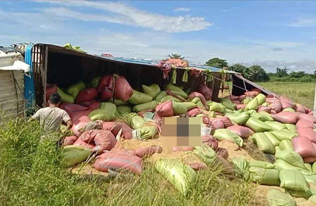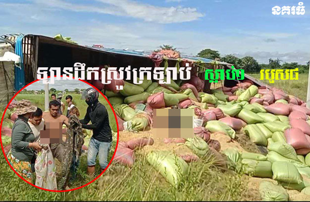 ខេត្តបាត់ដំបង ៖ រថយន្តខ្នាតយក្ស ដឹកស្រូវរាប់សិបតោន ១គ្រឿង កំពុងបើកបរលើដងផ្លូវសុខៗ ស្រាប់តែអ្នកបើកបរងងុយដេក ងោក ១ភាំង ធ្វើឱ្យរេចង្កូតទៅបុករបាំងពុះចែកផ្លូវ ពេញទំហឹង ហើយរេចង្កូតក្រឡាប់ធ្លាក់ចូលស្រែល បណ្តាលឱ្យបុរសម្នាក់ ត្រូវគំនរបាវស្រូវសង្កត់ស្លាប់ និង៨នាក់ទៀត រងរបួសធ្ងន់-ស្រាល។