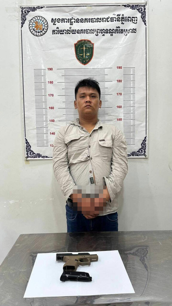 ក្រោយពីធ្វើការឃាត់ខ្លួនជនសង្ស័យរួច សមត្ថកិច្ចបានដកហូតវត្ថុតាង រួមមាន ម៉ូតូ ម៉ាក YAMAHA FZ ពណ៌សលាយខៀវ ពាក់ស្លាកលេខ ខេមរភូមិន្ទ 1-2227 និងកាំភ្លើងហ្គាស់កែច្នៃ ម៉ាក Glock បាញ់គ្រាប់កាំកង់ (កាន់ ធ្វើសកម្មភាព)។
