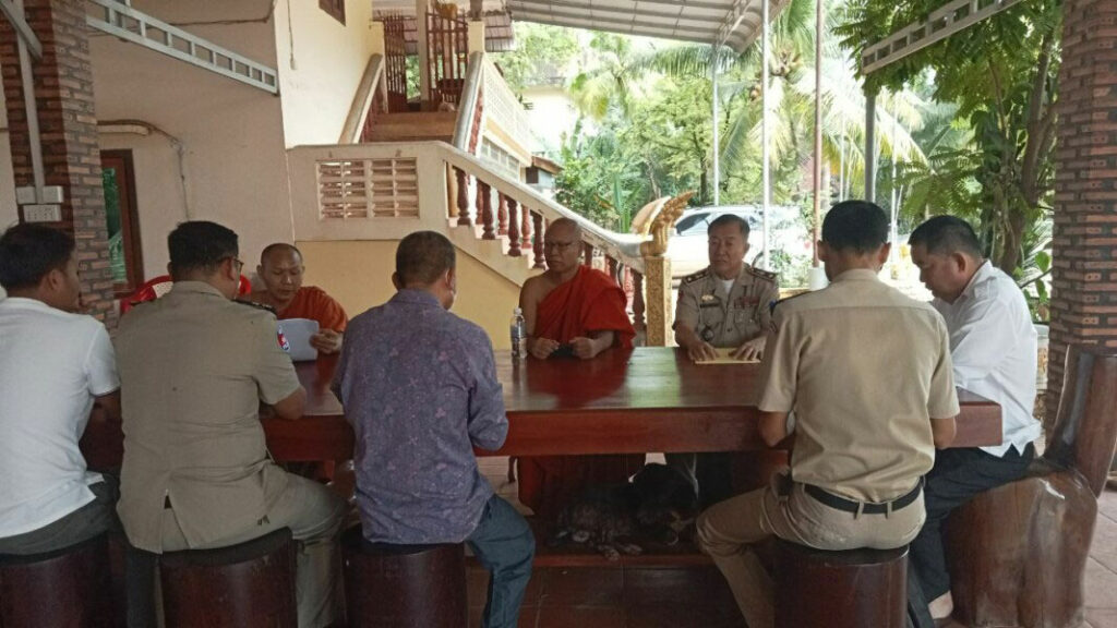 លោកនាក់ យិតថូ ប្រធានមន្ទីរធម្មការនិងសាសនាខេត្ត បានឱ្យដឹងថា ក្រោយពីមានពលរដ្ឋរាយការណ៍ភ្លាម លោកបានរាយការណ៍ទៅស្នងការខេត្ត ដើម្បីសុំកម្លាំងសមត្ថកិច្ចចុះសហការជាមួយមន្ត្រីធម្មការ ទៅពិនិត្យដល់ទីតាំងជាក់ស្តែង ក្នុងបន្ទប់ផ្ទះសំណាក់ ដែលលោកស្នាក់នៅនោះ ក៏បានឃើញនិងមានតែម្នាក់ឯង ក្នុងបន្ទប់ ដោយនៅលើខ្លួន ស្លៀកកន្សែងពោះគោ មិនពាក់អាវទេ។ ពេលនោះ សមត្ថកិច្ចឱ្យចៅអធិការក្លែងភេទនេះ ចេញពីក្នុងបន្ទប់ រួចបានទទួលសំណូមពរពីមន្ត្រីធម្មការខេត្ត សុំផ្ញើអន្ទិតសឹកដំបូកនេះ នៅស្នងការដ្ឋានខេត្ត មួយយប់ រង់ចាំព្រឹកឡើង សឹមធ្វើការបន្ត។