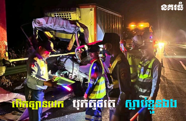 ខេត្តកំពង់ស្ពឺ ៖ រថយន្តធុនធំ ១គ្រឿង កំពុងបើកបរពេញល្បឿន នៅលើកំណាត់ផ្លូវល្បឿនលឿន ស្រាប់តែអ្នកបើកបរងងុយដេក ងោក១ភាំង ជ្រុលទៅបុកពីក្រោយរថយន្តធុនធំ ១គ្រឿងទៀត ដែលកំពុងបើកបរស្របទិស គ្នា យ៉ាងពេញទំហឹង បណ្តាលឱ្យអ្នកបើកបររថយន្តស្លាប់នៅនឹងកន្លែង និងអ្នករួមដំណើរម្នាក់ រងរបួស និងត្រូវបានដឹកបញ្ជូនទៅសង្គ្រោះភ្លាមៗ។ ចំណែកភាគីអ្នកបើកបររថយន្តម្ខាងទៀត បានចុះរត់គេចខ្លួនបាត់។