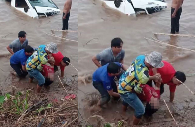 ឪឈឺ កូនដឹកទៅពេទ្យ ឡានធ្លាក់ទឹកស្លាប់