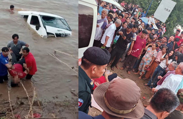 ខេត្តកំពង់ចាម ៖ បុរសវ័យចំណាស់ម្នាក់ បានកើតមានអាការមិនស្រួលខ្លួន ចេះតែអស់កម្លាំង និងមិនពិសា បាយ ប៉ុន្មានថ្ងៃមកហើយ ទើបកូនៗបានរួមគ្នាជួលរថយន្ត ១គ្រឿង ដឹកឪពុកទៅកាន់មន្ទីរពេទ្យ ឯរាជធានីភ្នំ ពេញ ដើម្បីពិនិត្យព្យាបាល ស្រាប់តែអកុសល ពេលធ្វើដំណើរមកដល់ពាក់កណ្តាលផ្លូវ រថយន្តដែលជិះគ្នាទាំងអស់៥នាក់ បានជួបគ្រោះថ្នាក់ ធ្លាក់ចូលទឹកទន្លេ បណ្តាលឱ្យស្លាប់ម្នាក់ និងបាត់ខ្លួន ២នាក់  សង្ស័យស្លាប់ (រួមទាំងអ្នកជំងឺ) ចំណែក២នាក់ទៀត បានរួចរស់ជីវិត។