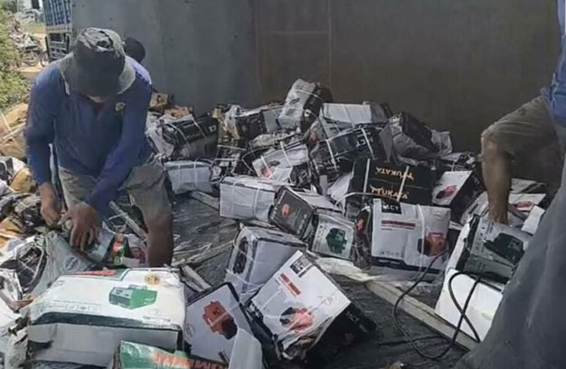 ឡានធំក្រឡាប់ ធ្លាយគ្រឿងអេឡិចត្រូនិកយួន