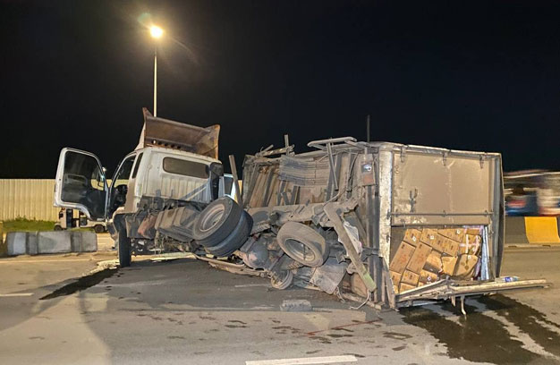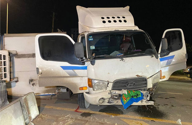 ភ្នំពេញ ៖ បុរសម្នាក់ បានបើករថយន្តដឹកទំនិញ ១គ្រឿង ក្នុងល្បឿនលឿន ខ្វះការប្រុងប្រយ័ត្ន រេចង្កូតទៅបុក របាំងថ្មពុះចែកទ្រូងផ្លូវ ពេញទំហឹង បណ្តាលឱ្យបាក់ ចំនួន៣កង់ ខ្ទាតចេញពីកន្លែងដើម ចំណែករថយន្តបង្កហេតុ ខូចខាតផ្នែកខាងមុខយ៉ាងធ្ងន់។