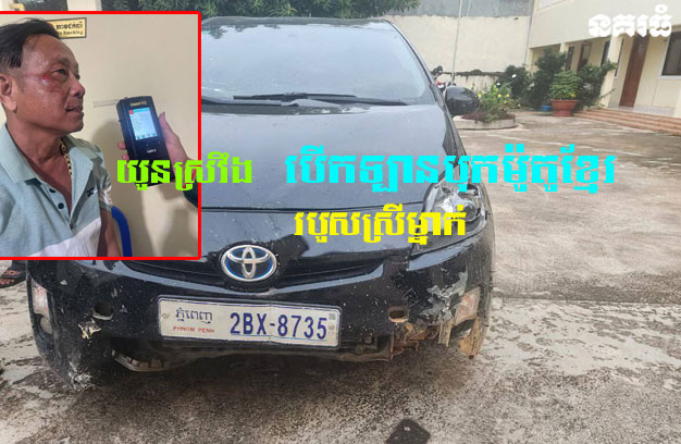 យួនស្រវឹង បើកឡានបុកម៉ូតូខ្មែរ របួសស្រីម្នាក់