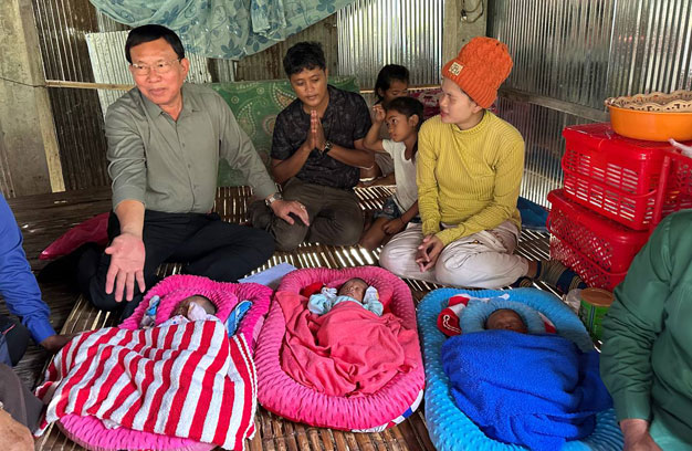 លោកបានឱ្យដឹងដែរថា ចាប់តាំងពីឆ្នាំ១៩៩៩ រហូតមកដល់បច្ចុប្បន្ននេះ ពោលគឺរយៈពេលជាង២៦ឆ្នាំ កន្លងមកនេះ មានគ្រួសារសម្រាលកូនភ្លោះ៣នាក់ ឬ៤នាក់ ចំនួន៤៣១គ្រួសារ រួចហើយ បានទទួលអំណោយឧបត្ថម្ភសប្បុរសធម៌ពីសម្តេចហ៊ុន សែន និងសម្តេចកិត្តិព្រឹទ្ធបណ្ឌិត សម្តេចហ៊ុន ម៉ាណែត និងលោកស្រីបណ្ឌិត ក្នុងការជួយទំនុកបម្រុងដល់ការលំបាកខ្វះខាតក្នុងជីវភាពរស់នៅប្រចាំថ្ងៃ ពិសេសការចិញ្ចឹមបីបាច់ទារកភ្លោះបីនាក់ ត្រូវជាចៅៗរបស់សម្តេច នៅពេលឆ្លងទន្លេរួច។