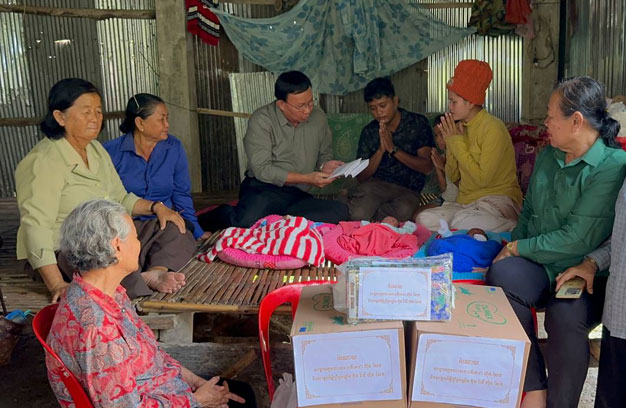 ខេត្តស្វាយរៀងៈ ទារកភ្លោះ ៣នាក់ ត្រូវជាចៅៗរបស់សម្តេចហ៊ុន សែន ប្រធានព្រឹទ្ធសភា និងសម្តេចកិត្តិព្រឹទ្ធបណ្ឌិត ប៊ុន រ៉ានី ហ៊ុនសែន និងក្មួយៗរបស់សម្តេចនាយករដ្ឋមន្ត្រី ហ៊ុន ម៉ាណែត  និងលោកស្រីបណ្ឌិត បានទទួលអំណោយសប្បសធម៌របស់សម្តេច ថវិកា១០លានរៀល អង្ករ ៥០គីឡូក្រាម ទឹកដោះគោ ២កេសធំ ស្ករ-ស ៥គីឡូក្រាម សារុង២ និងក្រមា២។
