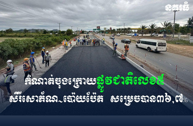 លោក ផន រឹម អនុរដ្ឋលេខាធិការ និងជាអ្នកនាំពាក្យក្រសួងសាធារណការនិងដឹកជញ្ជូន បានឱ្យដឹងនៅព្រឹកថ្ងៃទី១៨ ខែវិច្ឆិកា ឆ្នាំ២០២៥ ថាគិតត្រឹមពាក់កណ្តាលខែវិច្ឆិកា ឆ្នាំ២០២៥ នេះ កំណាត់ចុងក្រោយ ផ្លូវជាតិលេខ៥ (សិរីសោភ័ណ-ប៉ោយប៉ែត) សម្រចលទ្ធផលជារួម ៣៦,៧% ហើយ។