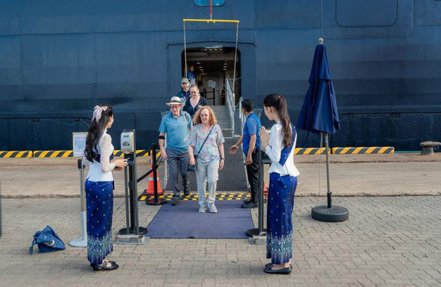 ខេត្តព្រះសីហនុ ៖ នាវាទេសចរណ៍ MS Westerdam នៅវេលាម៉ោង ៦និង២០នាទីព្រឹក ថ្ងៃទី១៨ ខែវិច្ឆិកា ឆ្នាំ២០២៥ បានចូលចតនៅកំពង់ផែស្វយ័តក្រុងព្រះសីហនុ រយៈពេល ១ថ្ងៃ នាំភ្ញៀវទេសចរណ៍ចម្រុះជាតិសាសន៍ ជិត២០០នាក់ មកទស្សនាខេត្តព្រះសីហនុ ជាថ្មី ។