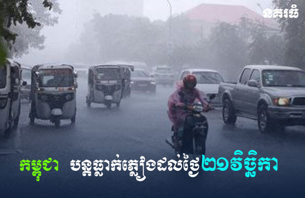 ភ្នំពេញ ៖ យោងតាមព្រឹត្តិបត្រព័ត៌មានស្តីពីស្ថានភាពធាតុអាកាស របស់ក្រសួងធនធានទឹក និងឧតុនិយម នៅព្រឹកថ្ងៃទី១៩ ខែវិច្ឆិកា ឆ្នាំ២០២៥ បានឱ្យដឹងថា របបខ្យល់មូសុងឦសានបក់លើសមុទ្រចិនខាងត្បូង អាងទន្លេមេគង្គ សមុទ្រកម្ពុជា សមុទ្រអានដាមម៉ែន និងលើព្រះរាជាណាចក្រកម្ពុជា។