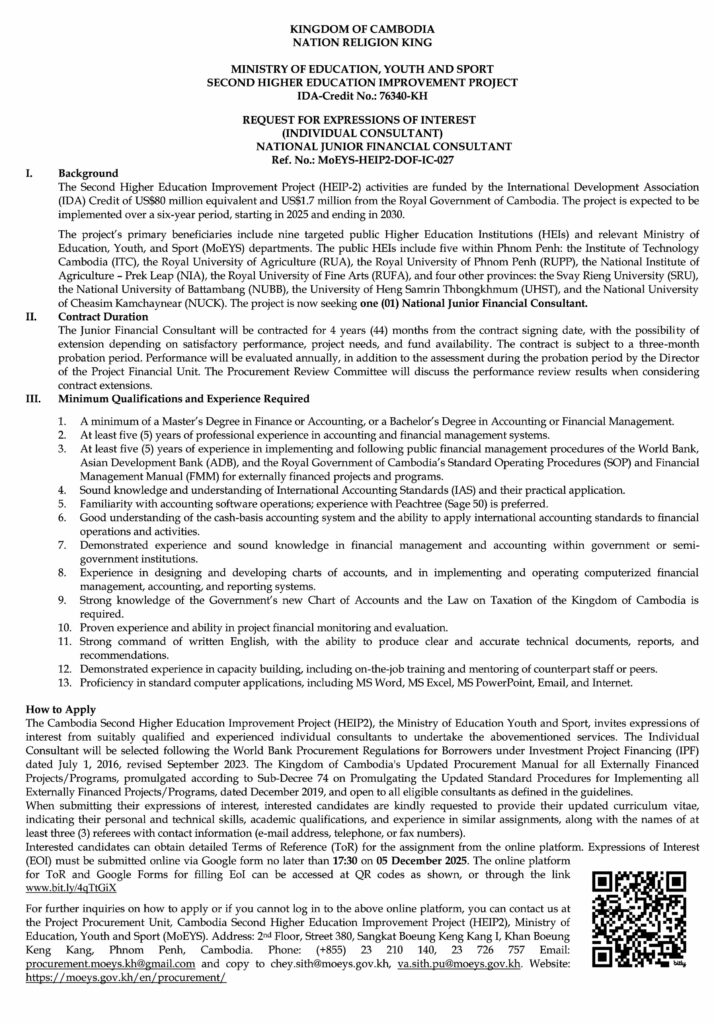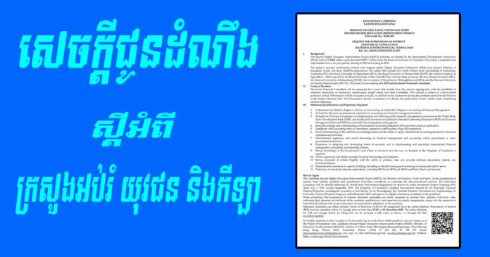 សេចក្តីជូនដំណឹង ស្តីអំពី ក្រសួងអប់រំ យុវជន និងកីឡា